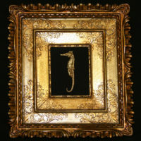 Hippocampe en résine (réplique d’un véritable spécimen) doré à la feuille 22,5 carats et patiné.